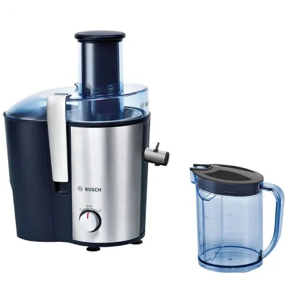 آبمیوه گیری بوش مدل «MES3500» از محصولات پرفروش و پرطرفدار این شرکت است که در کنار طراحی زیبا، کیفیت ساخت بالایی هم دارد. این آبمیوه گیری دارای دو مخزن آبمیوه و تفاله است که هر کدام به گونهای مجزا از دستگاه در کنار آن قرار گرفتهاند. قابلیت جدا شدن مخزنها علاوهبر نظافت آسانتر، ظرفیت بیشتری را هم در اختیار دارندگان آن قرار میدهد. لازم به ذکر است که تیغه اصلی این دستگاه آب میوه گیری از جنس استیل ضد زنگ بوده و دهانه آن هم از قطر مناسب برخوردار است. علاوه بر فیلتر آب میوه گیری که به راحتی قابل شست و شو است، میتوان لوازم جانبی آن را هم در ماشین ظرفشویی قرار داد. برای این دستگاه اقلام همراهی نظیر مخزن پلاستیکی آبمیوه که شفاف و دارای درجه بندی است و همچنین مخزن تفاله آبمیوه گیری در نظر گرفته شده که به راحتی میتوان آنها را پس از پر شدن از دستگاه جدا کرد و پس از وقفهای کوتاه آنها را خالی و برای ادامه فرآیند آبمیوه گیری روی دستگاه قرار داد. آبمیوهگیری بوش مدل «MES3500» دستگاهی تککاره است و میتوان توان آن را در دو سرعت تنظیم کرد. پایههای ضد لغزش زیر این دستگاه مانع از لرزش و جابجایی آن حین کار میشود. لوله خروجی دستگاه و پارچ آبمیوه آن طوری طراحی شدهاند تا آبمیوه مستقیم وارد پارچ شده و چکهای ایجاد نشود. لازم به ذکر است که ظرفیت پارچ این آب میوه گیری بوش حدود 3 تا 4 لیوان کوچک یا متوسط است.