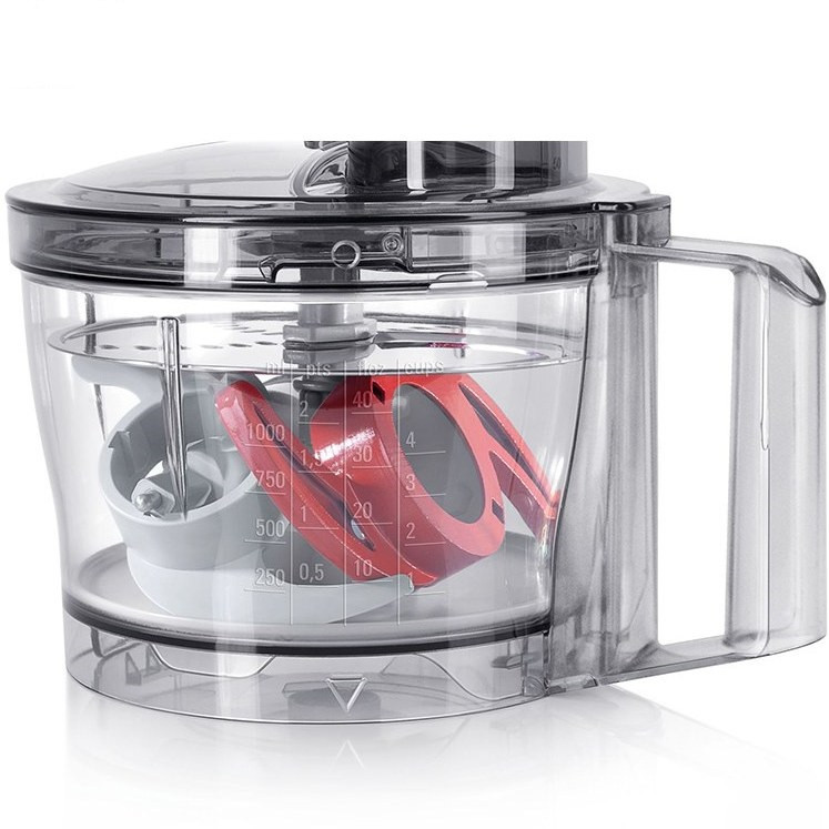 ابعاد این غذاساز 375 در 260 در 220 می باشد و وزن آن 2.8 کیلوگرم است. در بالای بدنهی اصلی دستگاه، ظرف خرد کن قرار میگیرد که این امکان را ایجاد میکند تا با اتصال تیغهها و دیسکهای رندهی متنوع، عملکردهای متفاوتی از دستگاه دیده شود.