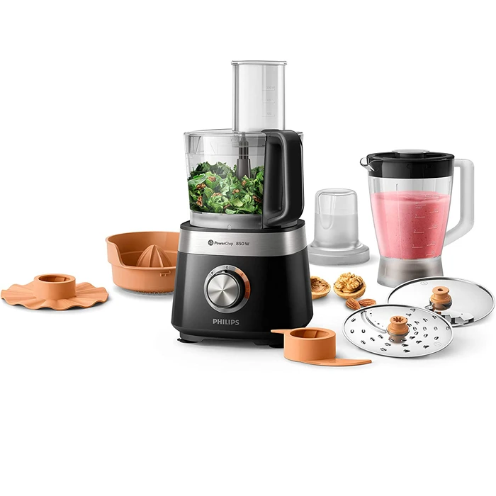 غذاساز ۳۱ کاره بالاترین مدل از سری جدید و حرفه ای ۷xxx غذاسازهای فیلیپس مجهز به فناوری Power Chop (بهترین نتیجه برای عملکردهای دستگاه) قابلیت خرد کردن یخ ترکیب شکل تیغه ، برش زاویه دار و کاسه درونی به گونه ای است که مواد سخت و نرم را می توان با بهترین نتیجه تحویل می دهد سرعت پیش فرض هر پروسه با رنگبندی اکسسوری ها و ولوم سرعت دستگاه مشخص شده است قابلیت رنده در ۳ مدل (دیسک رنده حلقه ایی متوسط دو طرفه می باشد، چیپس ساز و رنده ) قسمتهای پلاستیکی دستگاه که در تماس با مواد غذایی هستند عاری از هرگونه مواد مضر سلامت می باشند