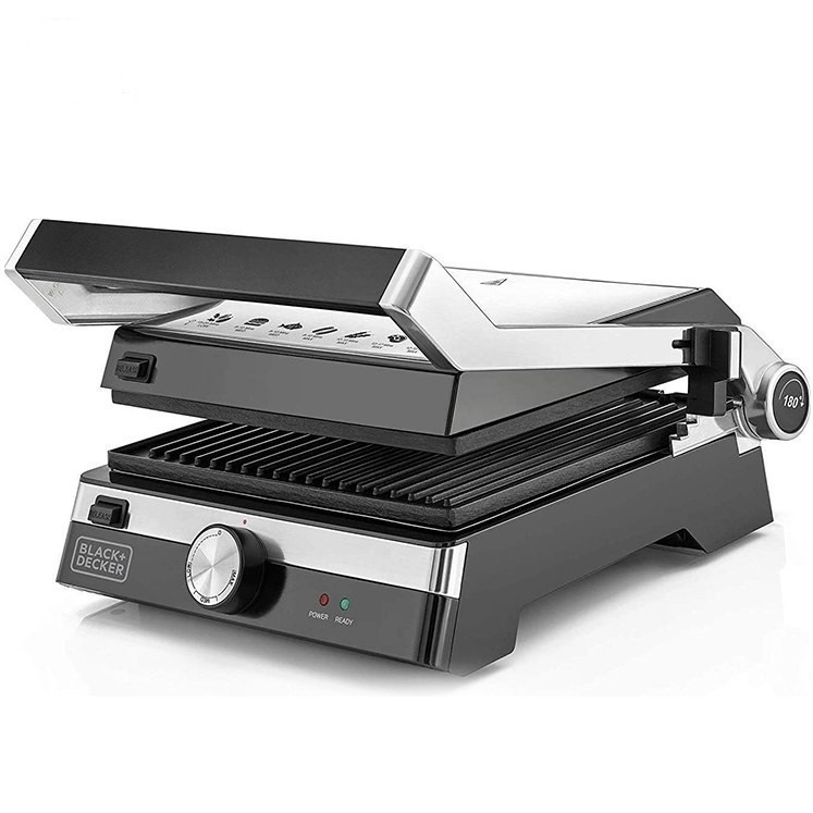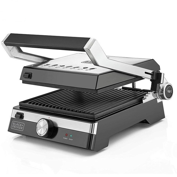 لذت درست کردن غذایی سالم و بدون روغن را با گریل بلک اند دکر مدل CG2000-B5 تجربه کنید.این دستگاه با بدنه ای ازجنس آلومنبوم بسیار مقاوم می باشد که به راحتی قابل شستشو نیز هست. این گریل با قدرت 2000 وات این قابلیت را دارد تا غذا را به طور کامل کبابی کند این دستگاه ،دارای دو صفحه گریل از جنس آلومینیوم است که توسط 2 المنت بالای صفحه گریل ،حرارت لازم که برای تهیه کباب و … قرار دارد و درب آن به صورت 180 درجه باز میشود میتوانید به راحتی مواد غذایی مورد نظر خود را کباب پز کنید از دیگر ویژگی های گریل بلک اندکر میتوان به دسته ی تنظیم حرارت آن اشاره کرد،که بر روی دستگاه قرار دارد و توسط آن می توانید حرارت دستگاه را برحسب نوع پخت خود تنظیم کنید.. گریل CG2000-B5 مجهز به دستگیره قفل شونده حین کار می باشد که موجب می شود غذای شما کامل و بدون ورود هوا کاملا پخته شود.
