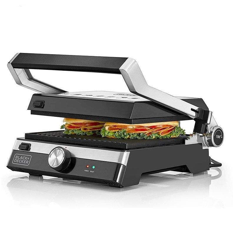 لذت درست کردن غذایی سالم و بدون روغن را با گریل بلک اند دکر مدل CG2000-B5 تجربه کنید.این دستگاه با بدنه ای ازجنس آلومنبوم بسیار مقاوم می باشد که به راحتی قابل شستشو نیز هست. این گریل با قدرت 2000 وات این قابلیت را دارد تا غذا را به طور کامل کبابی کند این دستگاه ،دارای دو صفحه گریل از جنس آلومینیوم است که توسط 2 المنت بالای صفحه گریل ،حرارت لازم که برای تهیه کباب و … قرار دارد و درب آن به صورت 180 درجه باز میشود میتوانید به راحتی مواد غذایی مورد نظر خود را کباب پز کنید از دیگر ویژگی های گریل بلک اندکر میتوان به دسته ی تنظیم حرارت آن اشاره کرد،که بر روی دستگاه قرار دارد و توسط آن می توانید حرارت دستگاه را برحسب نوع پخت خود تنظیم کنید.. گریل CG2000-B5 مجهز به دستگیره قفل شونده حین کار می باشد که موجب می شود غذای شما کامل و بدون ورود هوا کاملا پخته شود.