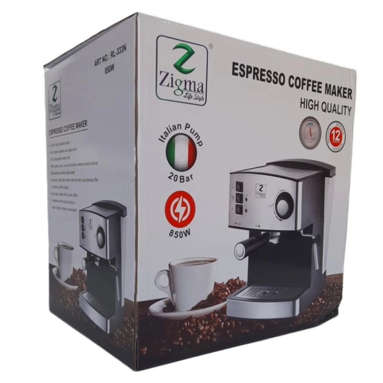 این محصول اسپرسوساز زیگما مدل RL-333 دارای توان قدرت 850 وات و دارای میزان بار 20 است. جنس بدنه این محصول از ترکیب استیل و پلاستیک مقاوم در برابر ضربه است. مجهز به یک مخزن 1/6 لیتری و دارای نشانگر میزان سطح آب می باشد. موارد استفاده این محصول دارای قابیلیت تهیه اسپرسو و کاپوچینو هست. دیگر ویزگی های این محصول دارای سیستم تنظیم میزان بخار هست. در قسمت جلو این محصول یک سینی تعبیه شده جهت جلوگیری از چکه شدن مواد بر روی دستگاه. ابعاد این محصول به طوری هست که به راحتی بر روی میز آشپزخانه یا در محل کار جاسازی میشود، بدون اشغال کردن فضای اضافی محیط. دارای ظاهری زیبا و قابیلیت استفاده از پودر قهوه را دارد. اسپرسوساز زیگما RL-333 مجهز به سیستم تنظیم غلظت قهوه است و قابیلیت تولید کف شیر هم دارد. همراه این محصول یک تمپر قهوه است و همچنین قابیلیت تنظیم میزان استفاده از اسپرسور یک نفره یا دو نفره. توصیه میشود در هنگام استفاده از محصول حتما از آب معدنی یا آب تسویه شده استفاده گردد چون باعث افزایش طول عمر محصول میشود. به دلیل وجود املاح و رسوب در آب لوله ، باعث میشود رسوب به داخل دستگاه نفوذ کند.