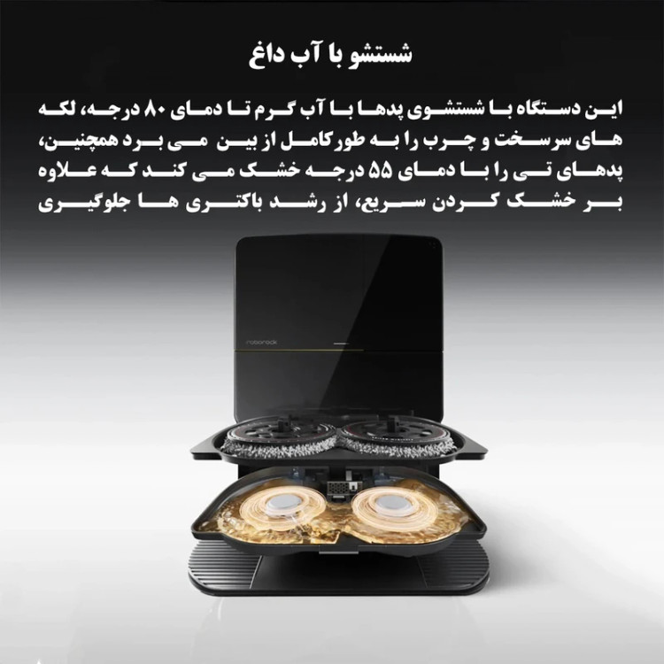 یکی از ویژگیهای ممتاز این مدل، قابلیت شستوشوی خودکار پد با آب گرم ۸۰ درجه سانتیگراد است. این موضوع علاوه بر تمیز کردن عمیق پدها، از تجمع باکتریها و بوی نامطبوع جلوگیری میکند. همچنین سیستم خشککن اتوماتیک پدها باعث میشود همیشه آماده استفاده باشند.